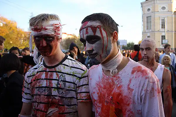 — Первый зомби-парад состоялся в 2003 году в Торонто. Тогда на него пришли всего шесть человек. Но уже в 2010 году в Нью-Джерси число участников аналогичного шествия превысило четыре тысячи. В России зомби-парады начали проводить с 2007 года. К настоящему времени такие акции увидели жители уже порядка десяти городов страны, — дает краткий экскурс в историю Александр