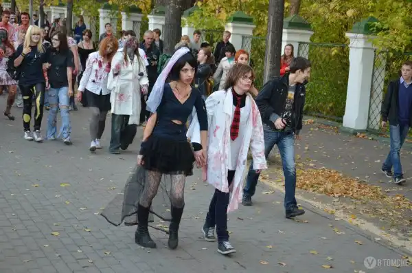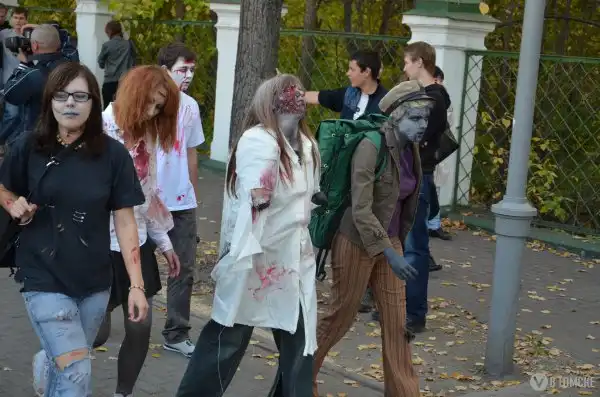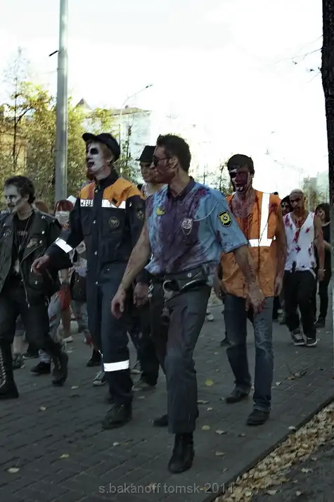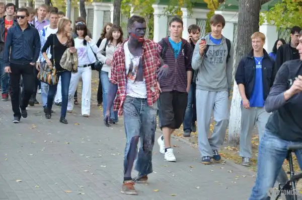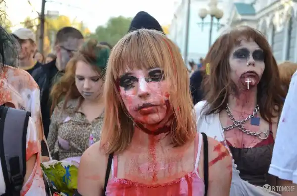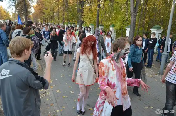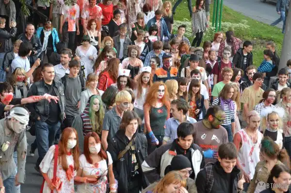 Вчера в Томске прошел т.н. "парад зомби". От проспекта Кирова до площади Ленина в сопровождении вполне живых людей "зомби-томичи" прошли вполне себе стройным рядами, привлекая внимание окружающих. Шествие получилось очень необычным и интересным. В шествии томских "зомби" приняло участие до 100 человек. Организаторами шествия выступили томичи, участники творческого объединения «Янг-дивижн».