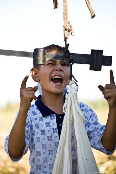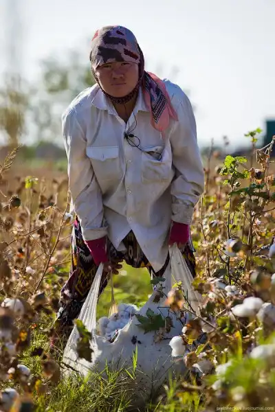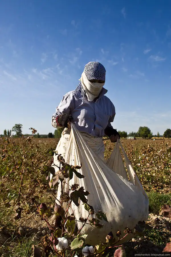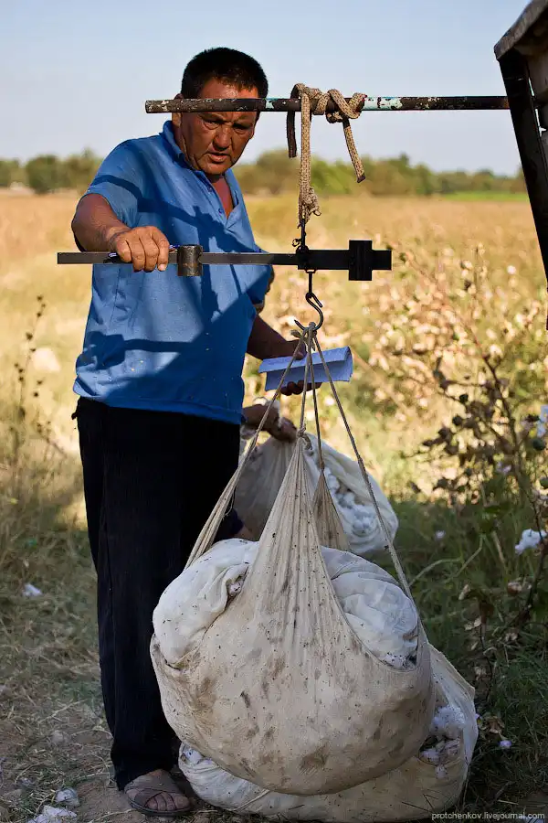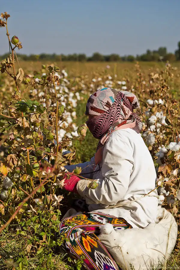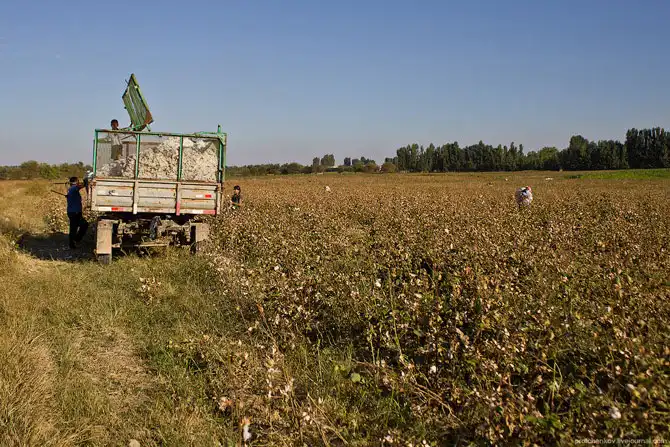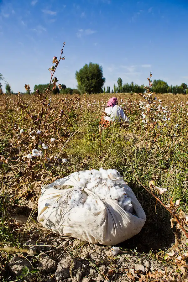 В тот день не обошлось без приключений. Я выехал из Ташкента и примерно в 10 км от города остановился около большого хлопкового поля, на котором трудилась просто куча народу. Я подошел к полю и только успел задать пару вопросов ребятам, которые там работали, и сделать несколько кадров как ко мне подошел мужчина и сказал, что снимать уборку хлопка строго запрещено. Поинтересовался, кто я и что тут делаю. Я сказал все как есть – мол, турист, фотографирую.