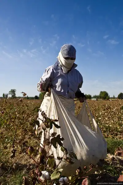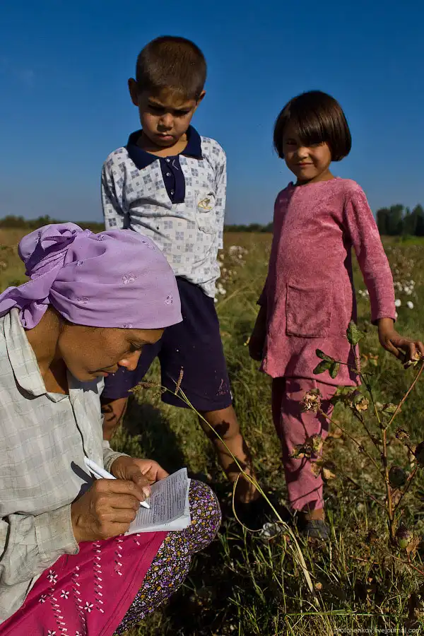 Проблема в том, что в Узбекистане на некоторых полях хлопок убирают школьники. Примерно 2 недели в году каждый день они ходят не в школу, а на поле. Казалось бы, что в этом такого – ну поработают детишки руками, побудут на свежем воздухе – здоровее будут. В конце концов, нас, российских школьников, тоже на летней практике в школе отправляли полоть морковку и я вспоминаю это веселое время только с хорошими чувствами, а учебные планы можно и перераспределить. Но всякими правозащитниками это используется как возможность упрекнуть Узбекистан в использовании детского труда. Поэтому организаторы уборок не очень любят людей с камерами.