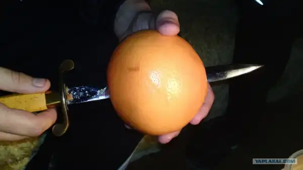 Кортиком делаем сквозное отверстие в грейпфруте.