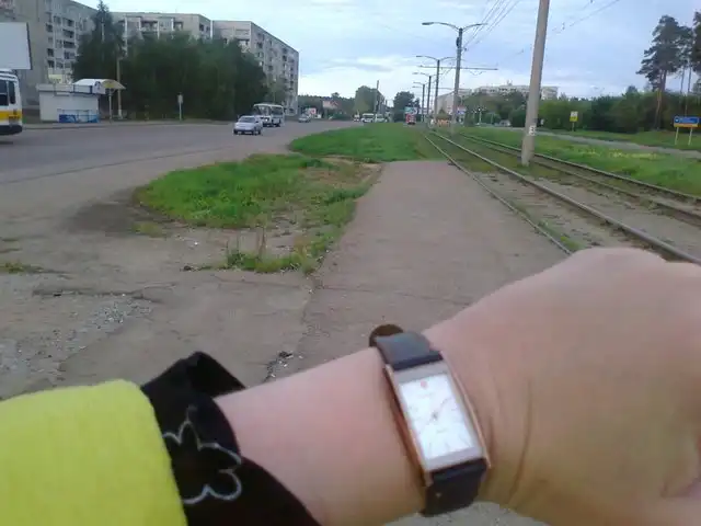 Вдали мой красный трамвай, на часах 8.08. Смена начинается в 8.30. Ехать 12 минут: