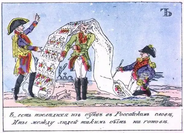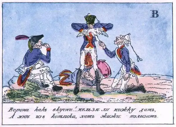 Быстро и оперативно откликнулись на вторжение Наполеона в Россию в 1812 году русские художники. Перед ними стояла задача популяризировать идею народного характера войны, найти такую форму, которая будет понятна самым широким слоям общества. Такой формой стала политическая «карикатура 1812 года», «летучие листы», как их ещё называли.