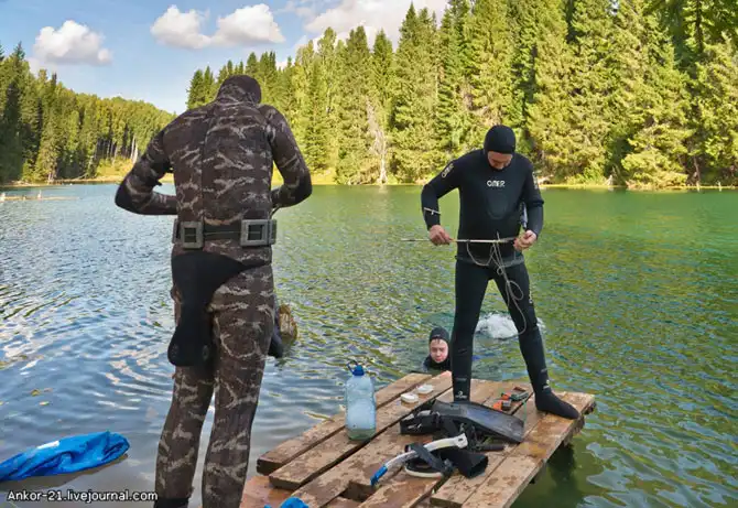 С берега видно, как подводные охотники методично обследуют пень за пнем, корягу за корягой.
