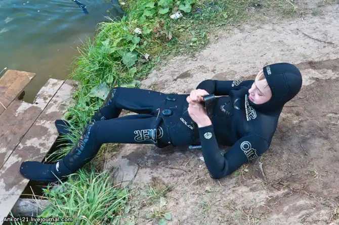 Наши ныряльщики, словно ледоколы, бороздят укромные заводи, покрытые толстым слоем тины.