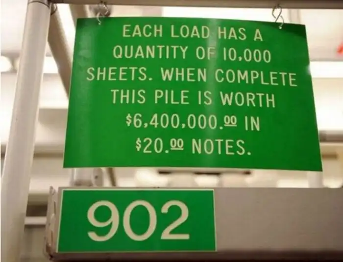 чтобы помещать готовые листы банкнот в специальную машину, которая наносит на купюры печать казначейства.