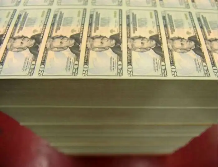 Листы 20-долларовых банкнот (общим количеством 10000), которые, после нанесения печати федерального казначейства,