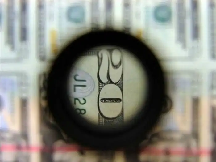 Вид сквозь лупу на 20-долларовую купюру в Бюро по выпуску денежных знаков и ценных бумаг в казначействе США.