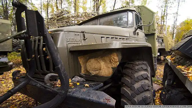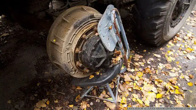 Пара минут ожидания – никаких звуков, никаких людей. Вспоминаем, что вроде бы около часа назад миновали остатки какого-то забора,- пара поваленных столбов и остатки колючей проволоки… Выходим на дорогу, подходим ближе к грузовику, обходим кругом…