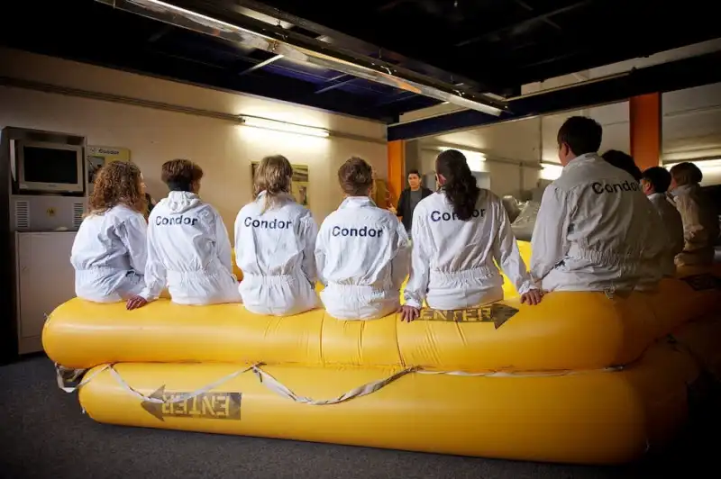 34. Утром в учебном центре «Кондор». В начале бортпроводники надевают специальную форму для тренировок