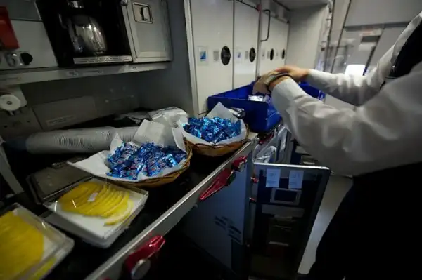 17. До посадки осталось несколько минут, еще нужно достать напитки, подготовить посуду, разложить все на тележку