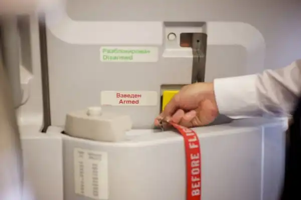 20. В обязанности Мурата также входит перевести дверь в положение "автомат" на случай аварийной эвакуации. В таком положении аварийный трап автоматически надувается и выбрасывается при открытии двери