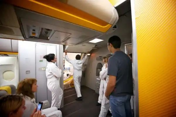 37. Тренировочный самолет стоит в два раза больше, чем настоящий Boeing. Поэтому для авиакомпаний выгоднее вывозить своих бортпроводников в существующие центры обучения, чем покупать свой