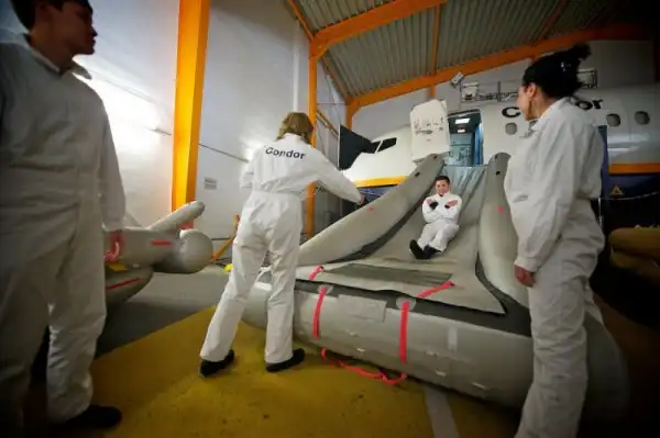 45. С надувного трапа пассажиры попадают в спасательную лодку