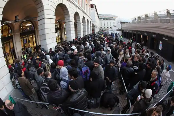 Сотни поклонников компании Apple стоят в очереди в городских кварталах Токио, чтобы стать первыми покупателями iPhone 4S, который похож на предыдущий iPhone 4, но оборудован улучшенной камерой, более быстрым процессором и обновленным программным обеспечением.