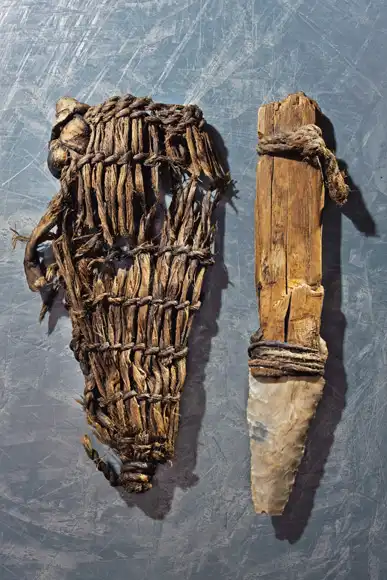 Обувь – состоящая из травы, кожи оленя и шкуры медведя. Это обувь – одна из старейших, когда-либо обнаруженных ученными.