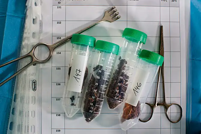 Окаменевшее содержимое желудка «ледяного человека». Доктора шутят, что у него был хороший аппетит.