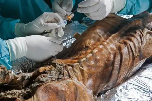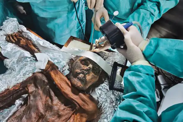 после того, как мумия была доставлена в лабораторию, исследователи подняли температуру то 64 градусов по Фаренгейту, чтобы разморозить мумию. Талую воду исследовали на наличие бактерий, которые способствовали тому, что древняя мумия так хорошо сохранилась.
