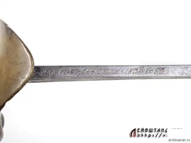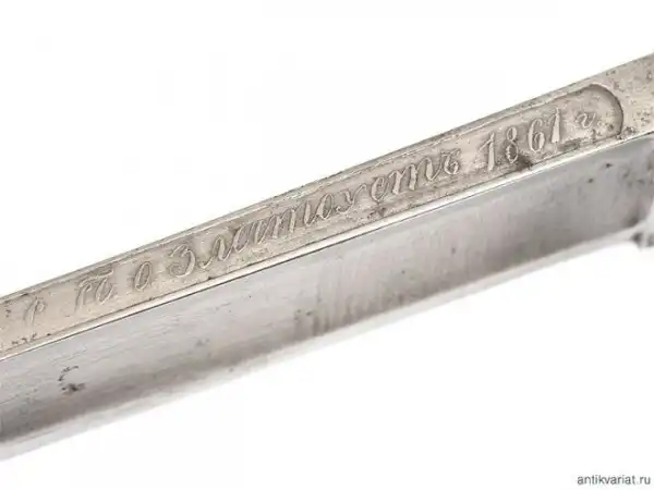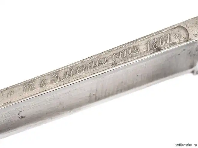 Палаш кирасирский солдатский образца 1826 года имел у основания клейма военной приемки, а на спинке помещена гравированная надпись: "Златоустъ февраля 1831 года".