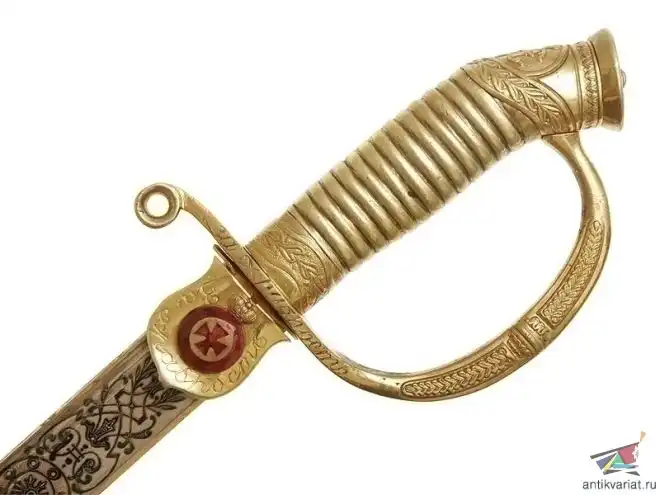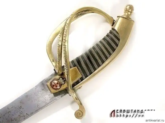 Шашка драгунского типа - Золотое Георгиевское оружие, совмещенное с награждением ордена святой Анны 4-й степени, с надписью "За Храбрость".
