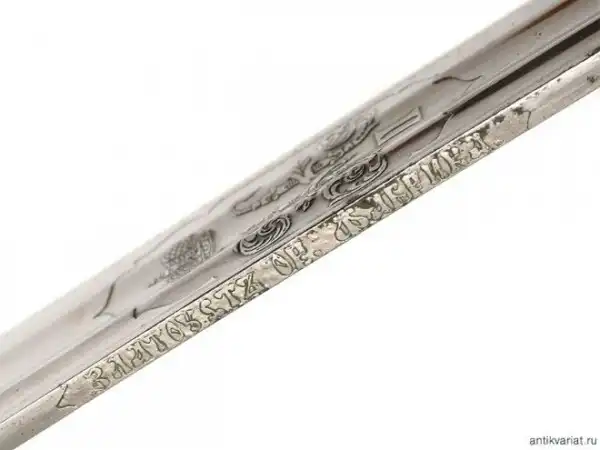 И златоустовские мастера наряду с массовым выпуском белого вооружения, стали ковать оружие наградное и украшенное.