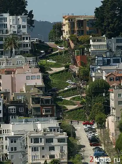 Эта улица находится в Сан-Франциско, в Калифорнии, и считается наиболее кривой, или запутанной. Действительно, и метра нельзя пройти, как улица снова поворачивает. Так было сделано из-за того, что угол подъема был бы слишком крут для транспорта. Поэтому было принято вот такое вот решение.