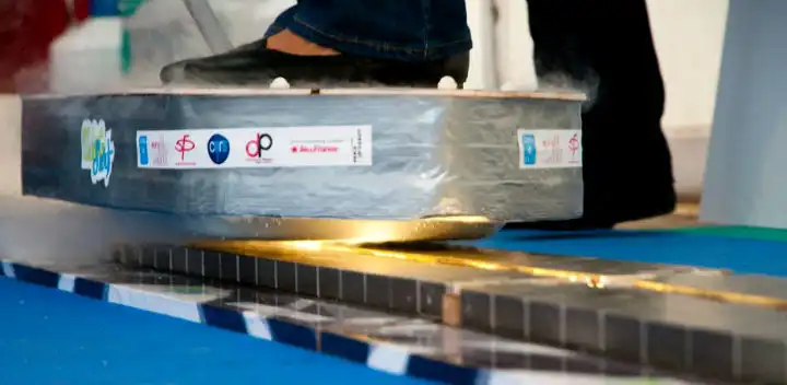 Летающий скейт построен на основе сверхпроводящего материала, окружённого слоем теплоизолятора. Внутрь скейта заливается жидкий азот. В результате начинка переходит в сверхпроводящее состояние, и устройство свободно парит в паре сантиметров над поверхностью магнитных рельсов.