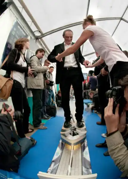 Несмотря на приличные размеры, добровольцы стояли на этом скейте не очень уверенно (фото Marie-Aude Méasson).