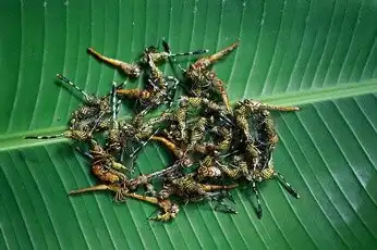 Личинки жуков-усачей, обитающие в корнях саговых пальм, — это очень популярная деревенская еда в Восточной Индонезии. Ради жирных и сочных личинок индонезийцы иногда сводят на нет небольшие пальмовые рощицы, а затем, аккуратно нанизав на прутья, поджаривают личинок над огнем. У них нежная мякоть, но очень плотная шкурка, которую нужно долго разжевывать. На вкус личинки напоминают жирный бекон.