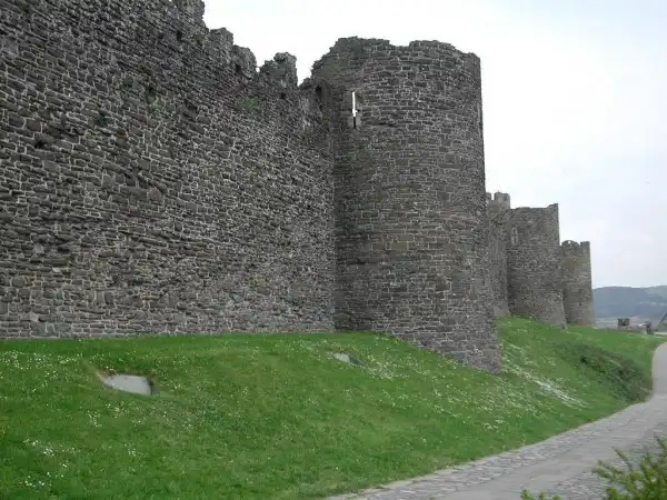Замок Конуэй был построен в Уэльсе по приказу английского короля Эдуарда I, который хотел замкнуть непокорный народ в «железное кольцо» замков. Из хроник известно, что на строительство замка было израсходовано около £15 000, а его архитектором был Мастер Джеймс из Сен-Джорджа. Сооружение замка продолжалось втечение четырёх лет. Чтобы исключить возможность подкопа и затруднить подрыв стен, замок строился на скалистых породах.