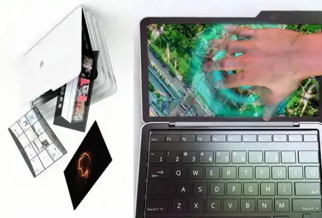 Весьма интересный концепт, хотя не для тех, кто предпочитает что-нибудь стильное или нейтральное. Как объясняет дизайнер Дэниел Александер, его уникальность заключается в гибком дисплее, который можно складывать, меняя его форму. Ноутбуком можно будет пользоваться как мобильным телефоном, поскольку он ещё и водонепроницаемый.