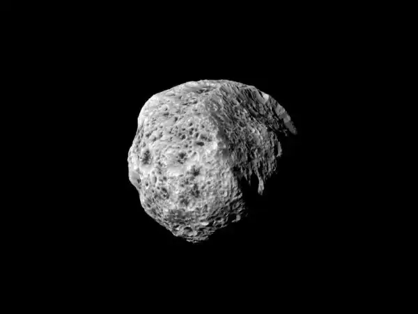 Гиперион. 16 сентября зонд «Кассини» пролетел мимо одной из самых странных лун Сатурна, Гипериона. Поверхность этого небольшого (всего 270 км в поперечнике) спутника похожа на губку. Другой особенностью Гипериона является его беспорядочное вращение вокруг собственной оси. Из-за этого заранее трудно предугадать, какая часть спутника повернется к камерам «Кассини» во время их очередного сближения.