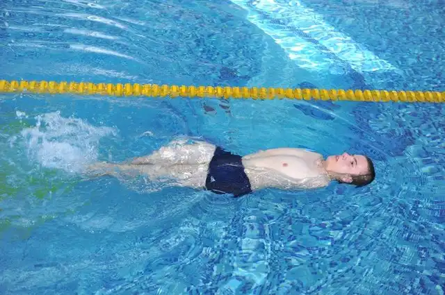 Из-за врожденного недуга Степа плавает только на спине. Время от времени он останавливается и делает передышку.