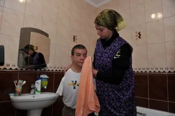 Ежедневно матушка Вероника умывает Степу и помогает ему привести себя в порядок.