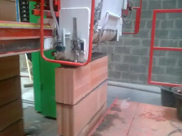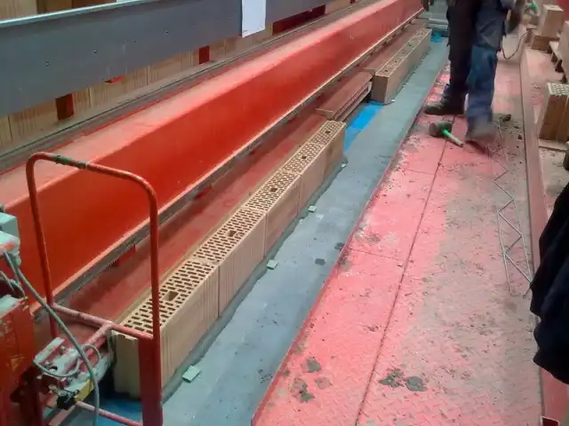 теперь рабочий пристукивает (иногда достаточно надавть руками) кирпичи до нужного уровня который точностю до 0.1см выставляется машиной... так получаем ровную кладку по высоте