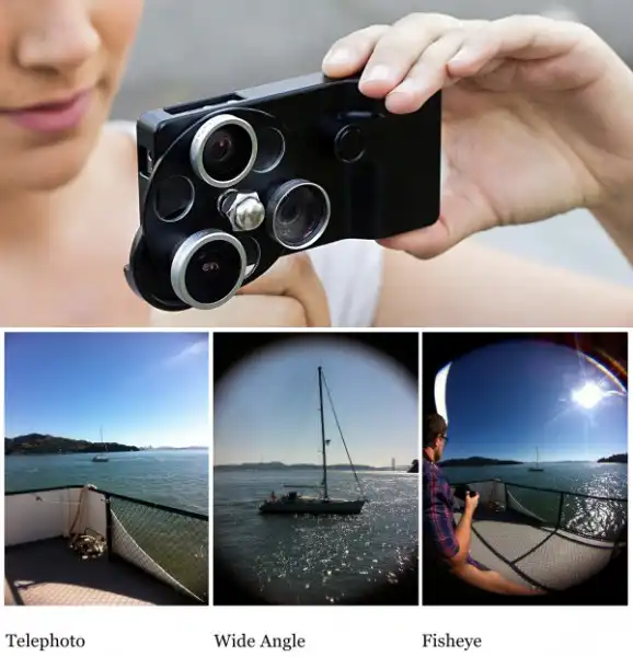 Для всех любителей фотографировать на свой iPhone, предлагает оригинальный девайс. Это сборный футляр с тремя сменными линзами, в который помещается айфон.