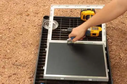 Снимите пластиковую рамку, открутив все винты на обратной стороне.