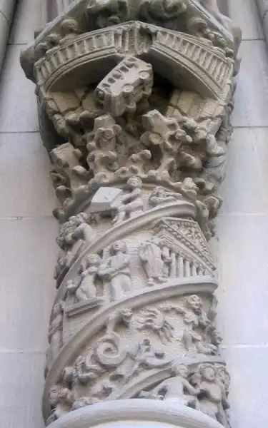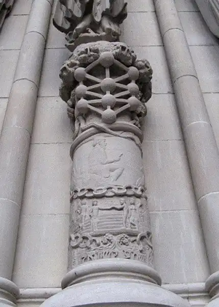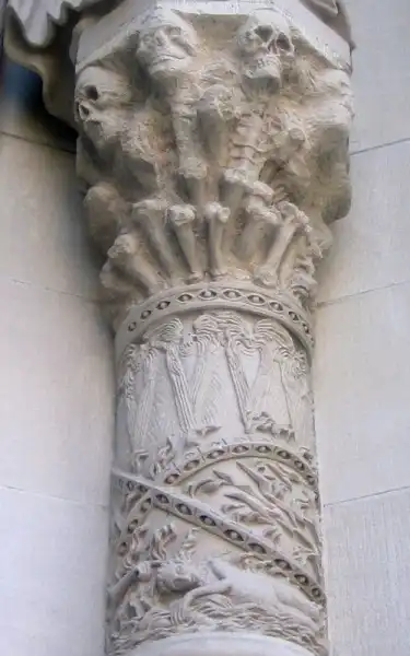Понятно, что масоны не могли обойтись только христианской символикой, но каббалистические символы вроде еврейского "древа жизни", змеи охраняющей сефиры и цепи выпадают из христианской иконографии. Впрочем, оформление этой колонны, на фоне других, так и говорит - праведникам (каббалистам?) ничего не грозит.