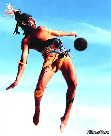 Прототип этой игры с каучуковым мячом, требующей большой ловкости, возник в Месоамерике еще за две тысячи лет до н.э. Майяская игра в мяч, как и сходные игры других народов Месоамерики, заключала в себе элементы насилия и жестокости – она завершалась человеческим жертвоприношением, ради которого и затевалась, а игровые площадки были обрамлены кольями с человеческими черепами. Участвовали в игре только мужчины, разделенные на две команды, которые включали от одного до четырех человек. Задача игроков состояла в том, чтобы не дать мячу коснуться земли и довести его до цели, удерживая всеми частями тела, за исключением кистей рук и ступней. Игроки облачались в специальные защитные одежды. Мяч чаще бывал полым; иногда за каучуковой оболочкой скрывался человеческий череп.