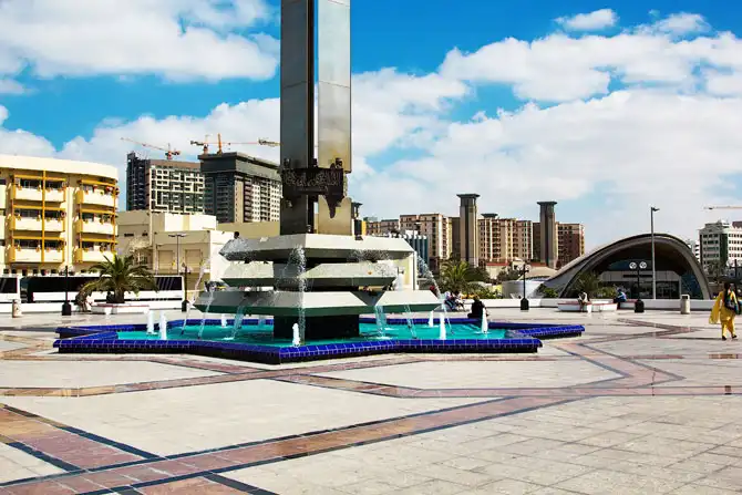 «The next station is: World Trade Center»! Здание с шариком для гольфа на верхушке – центр сотовой связи. А центр международной торговли – первый небоскреб, построенный в Дубае!