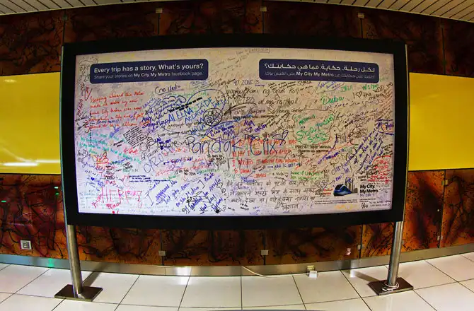 На каждой станции метро есть вот такие доски, здесь вы можете поделиться своими впечатлениями о поездке. Матов и похабщины замечено не было. Стоит ли говорить, что стало бы с этой доской,если бы её разместили у нас в Москве?