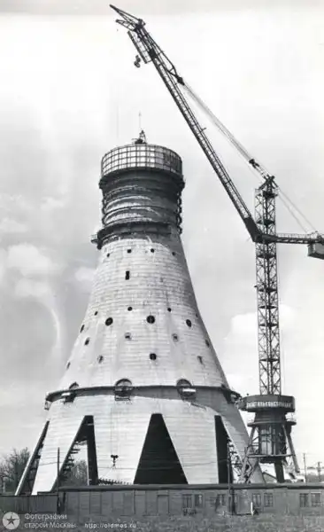 Железобетонная опора всего сооружения—это тонкостенная коническая оболочка, опирающаяся десятью железобетонными “ногами” на банкетки фундамента. Диаметр нижнего основания этой оболочки — 60,6 метра, а на высоте 63 метров он равен 18 метрам. Верхняя часть железобетонного ствола, начиная с высоты 321 метр, выполнена в виде цилиндра с наружным диаметром 8,1 метра. Толщина стен у основания башни — 500 миллиметров.