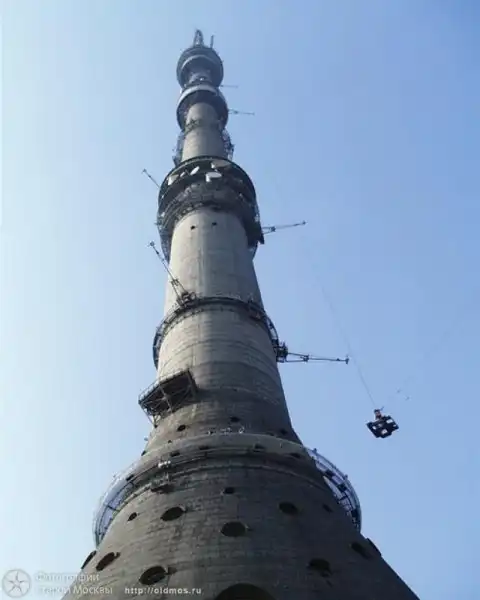 На отдельной площадке гусеничным краном СКГ-100 (грузоподъемностью 100 тонн) собирались секции металлических антенн. Это была контрольная сборка. Одновременно на антеннах монтировалось оборудование и устанавливались вибраторы. Потом секции антенны вновь разобрали, и отдельные их части — царги — подавались краном на перегрузочную площадку на высоту 63 метра. Затем специальным краном, установленным на стволе башни, первые царги поднимались на вершину башни и монтировались так, что они вошли внутрь ее ствола на 10 метров. А после этого монтаж вели с помощью ползучего крана.
