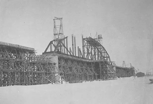 Сооружение левобережной арочной эстакады через Бешеную протоку реки Амур. Впервые в мировой практике была выполнена перевозка изготовленных у берега железобетонных пролетных строений (весом до 4000 тонн) на понтонах.