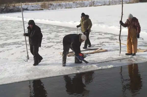 Если честно, думала, что толстый лед появляется только к январю-февралю. Интересно было, что его уже в ноябре добывать можно.