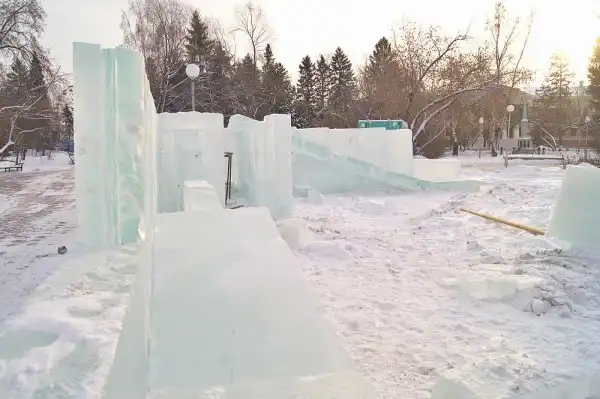 Недавно к нам в ВУЗ, где я учусь, на лекцию приходили представители компании, строящей ледовые городки. Рассказывали весь процесс подготовки льда, как его добывают, как создают скульптуры, предлагали и нам поучаствовать в процессе создания. Довольно интересно! Попросила у них фотографии, смотрите: