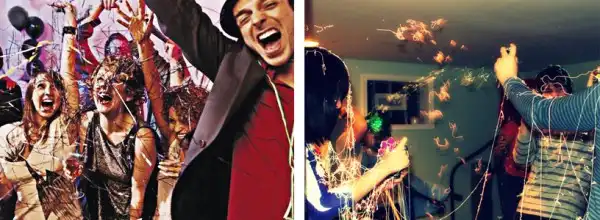 Чтобы праздник не прошел по стандартному сценарию «В девять пришли гости, мы сидели за столом, ели, пили, смотрели «Голубой огонек», поругивая нашу попсу, а потом послушали президента, открыли шампанское и пошли гулять по Садовой, развлекая себя запуском петард», возьмись заблаговременно за написание альтернативного сценария. Пусть, например, твой праздник пройдет в стиле утренника в детском саду. Тогда все приглашенные должны получить при входе маски зайчиков, мышек и хрюшек, рассказать, взобравшись на табурет, стихотворение и срезать с закрытыми глазами с натянутой ниточки свой подарок. Или накрой кофейный столик зеленым сукном и предложи гостям прикинуться крутыми гангстерами, а в полночь пусть придет фальшивый Дед и, грозя водяным пистолетиком, потребует отдать ему банк... Да что это я, собственно. Ведь это твой новогодний праздник – тебе и решать, как он пройдет!