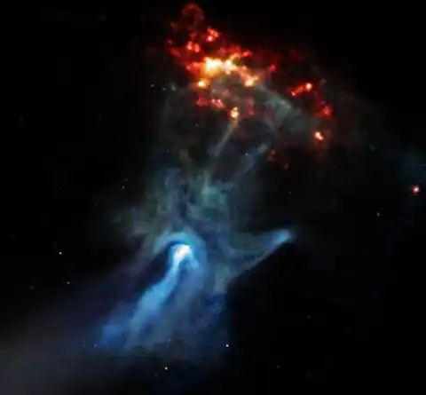 Телескопы обнаружили на небе и "Руку Бога" - объект, похожий на человеческую конечность, является туманностью, обнаруженной вокруг погибающей звезды PSR B1509-58. По оценкам экспертов NASA, "Рука Бога" появилась на небе примерно 17 тыс. лет назад. Длина каждого "пальца" - 160 световых лет.