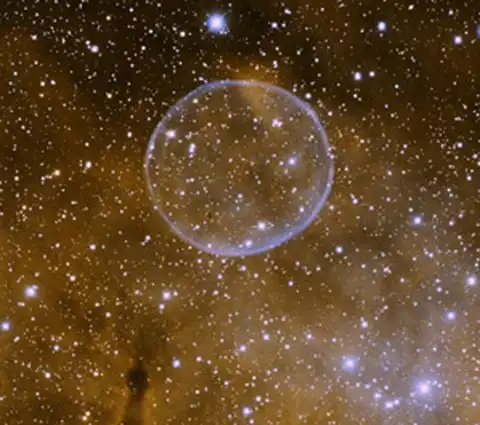 В 2008г. астрономы обнаружили удивительную туманность в форме сферы, которая получила название PN G75.5+1.7. Ученые полагают, что такие планетарные туманности образуются из сильно постаревших звезд, которые набирают массу, в восемь раз превышающую массу Солнца, и "выстреливают" свое внешние оболочки светящимся газом. Какой скрытый смысл есть в этом гигантском шаре, никто пока сказать не может. Возможно, в дальнейшем его неофициально нарекут "Воздушным шариком" или "Мыльным пузырем" Бога.