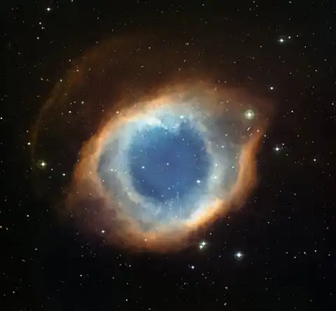 Очередное "божественное" проявление было обнаружено еще в XIX веке в созвездии Водолея. Это спиральная туманность, имеющая обозначение NGC 7293 и расположенная от Земли в 700 световых годах. В прессе туманность окрестили "Глазом Бога", так как она похожа на зрачок. Предположительно, этот объект состоит из двух дисков. Диаметр "зрачка" - 2,2 световых года.
